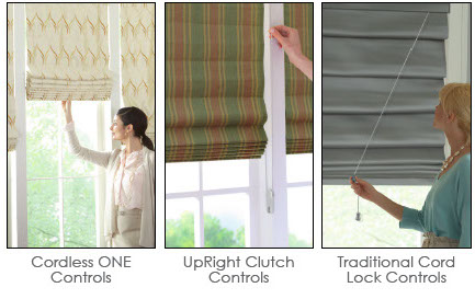 3  3. Cordless ONE Controls, UpRight or Cordlock available at No Charge Big shades or small shades… high shades or shades all the way to the floor… pick the controls that best suits your needs at no extra charge!