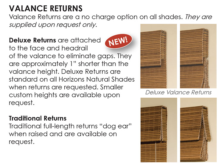 Technical specification for NATURAL SHADE VALANCE RETURNS from the Horizons Product Guide