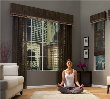 These board mounted and rod mounted top treatments are separate units that may be used with any window fashion. For example, imagine the elegant contrast of a Natural Woven Top Treatment combined with the soft fabric side panels.